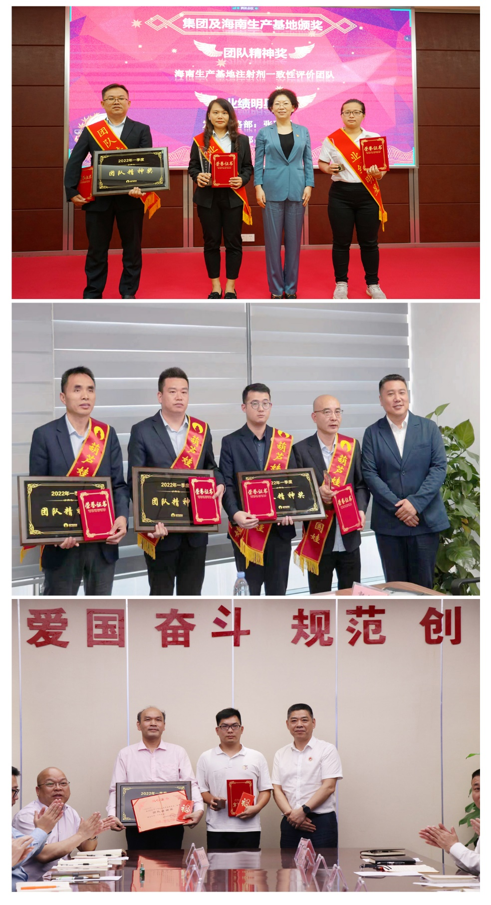 为了表彰在2022年一季度“深化变革,赢得开门红”工作中“超额完成计划、超出本职工作或超越组织预期”的先进集体和优秀个人,会议期间还举行了PA视讯药业集团2022年一季度“开门红”表彰颁奖仪式。营销中心葫芦世家事业部湖南区域主管黄子杰等12人荣获业绩明星奖,葫芦世家事业部等5个集体荣获团队精神奖。