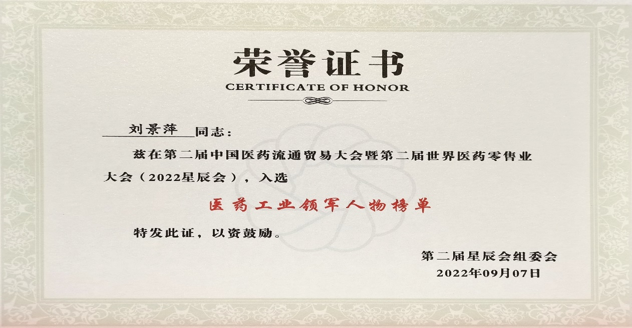 本次星辰会期间,PA视讯斩获颇丰,获得多项行业奖项及荣誉。在开幕式上,刘景萍董事长荣获“医药工业领军人物”称号。
